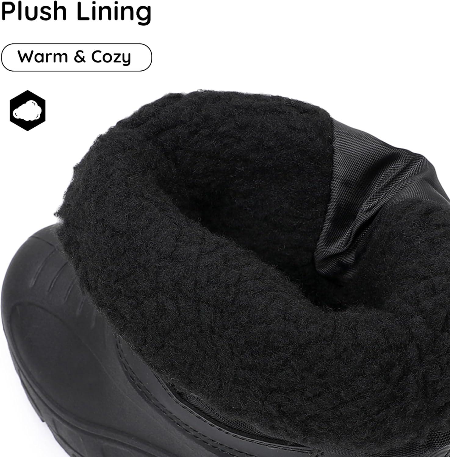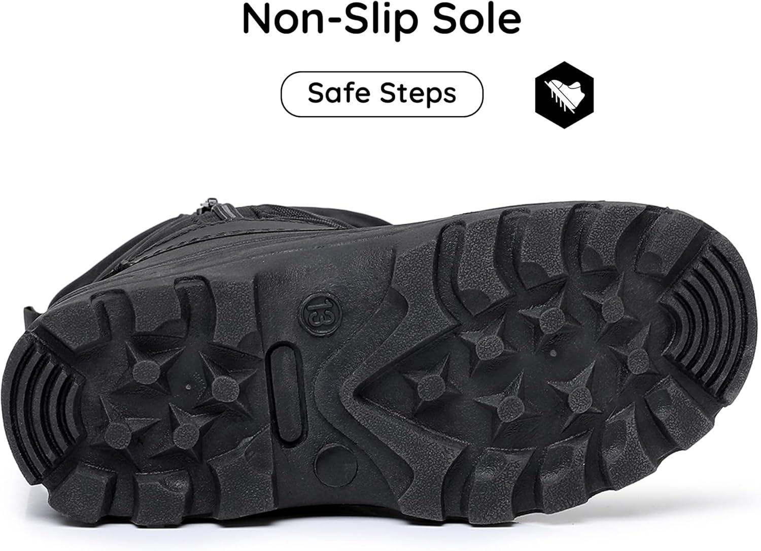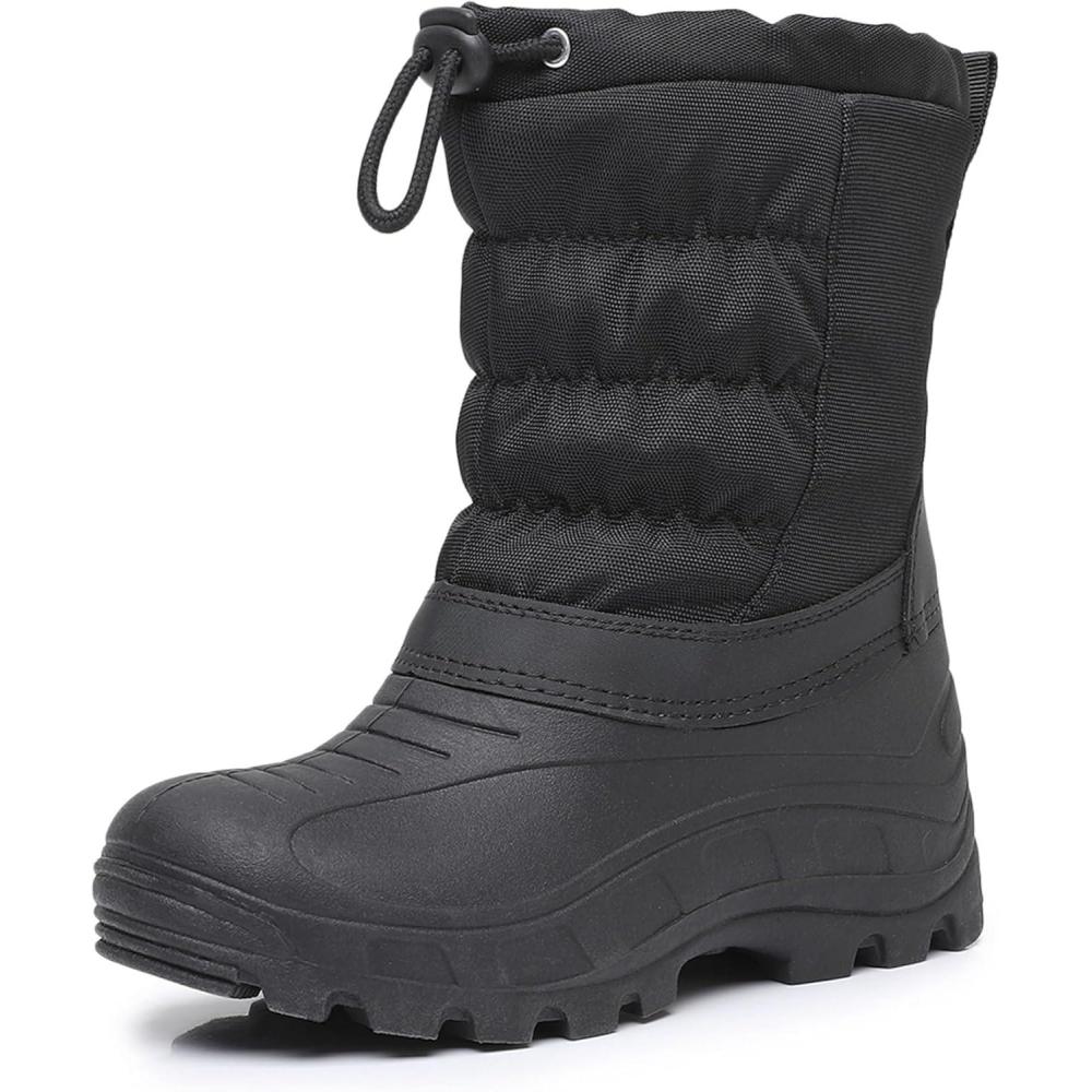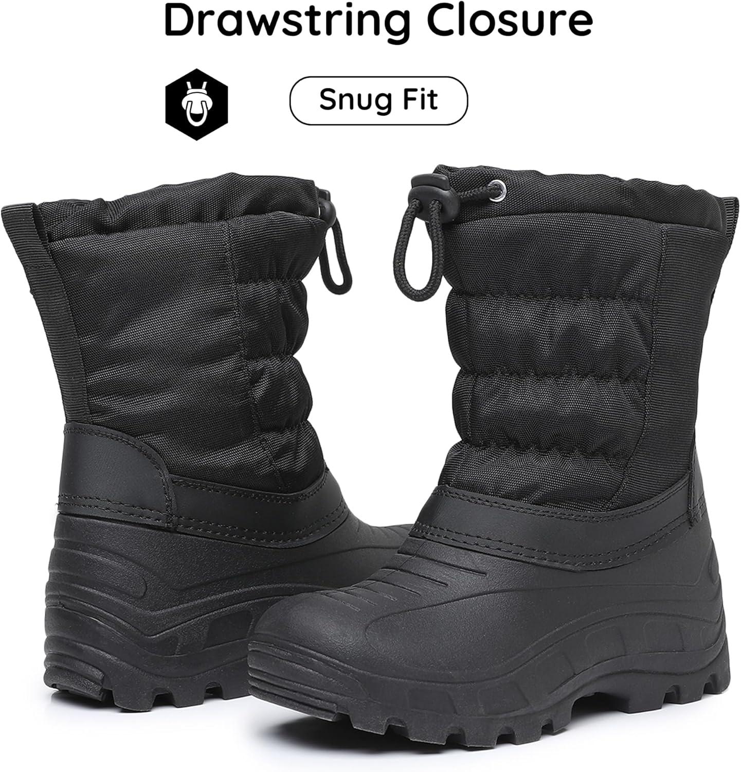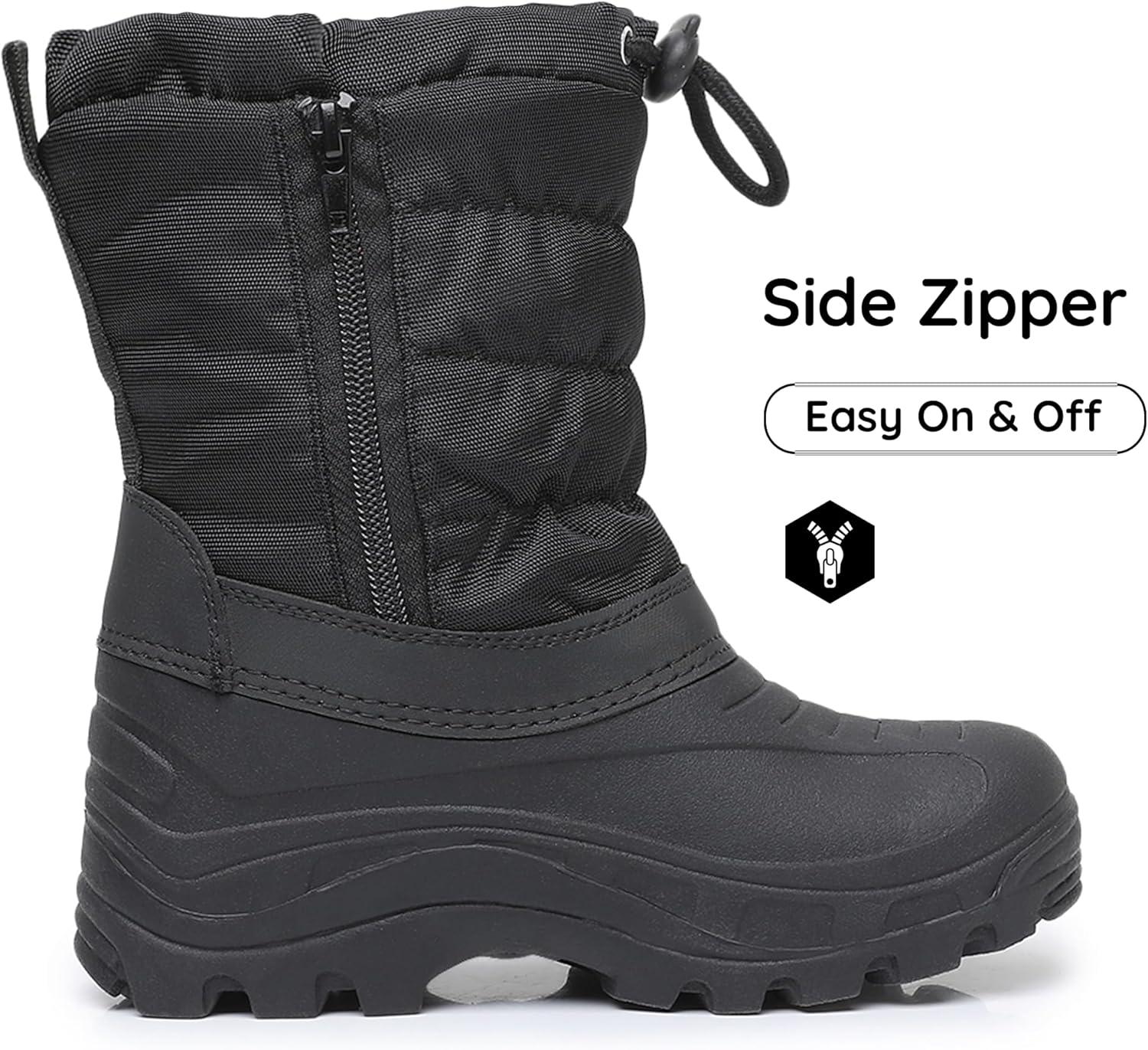 Apakowa Boys Girls Winter Snow Boots – Waterproof Insulated Cold Weather Boots with Side Zipper, Drawstring Closure & Anti-Slip Sole(Black)