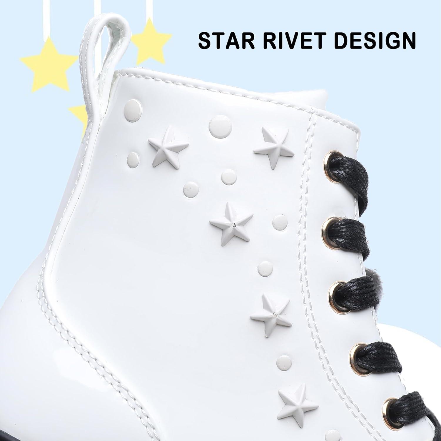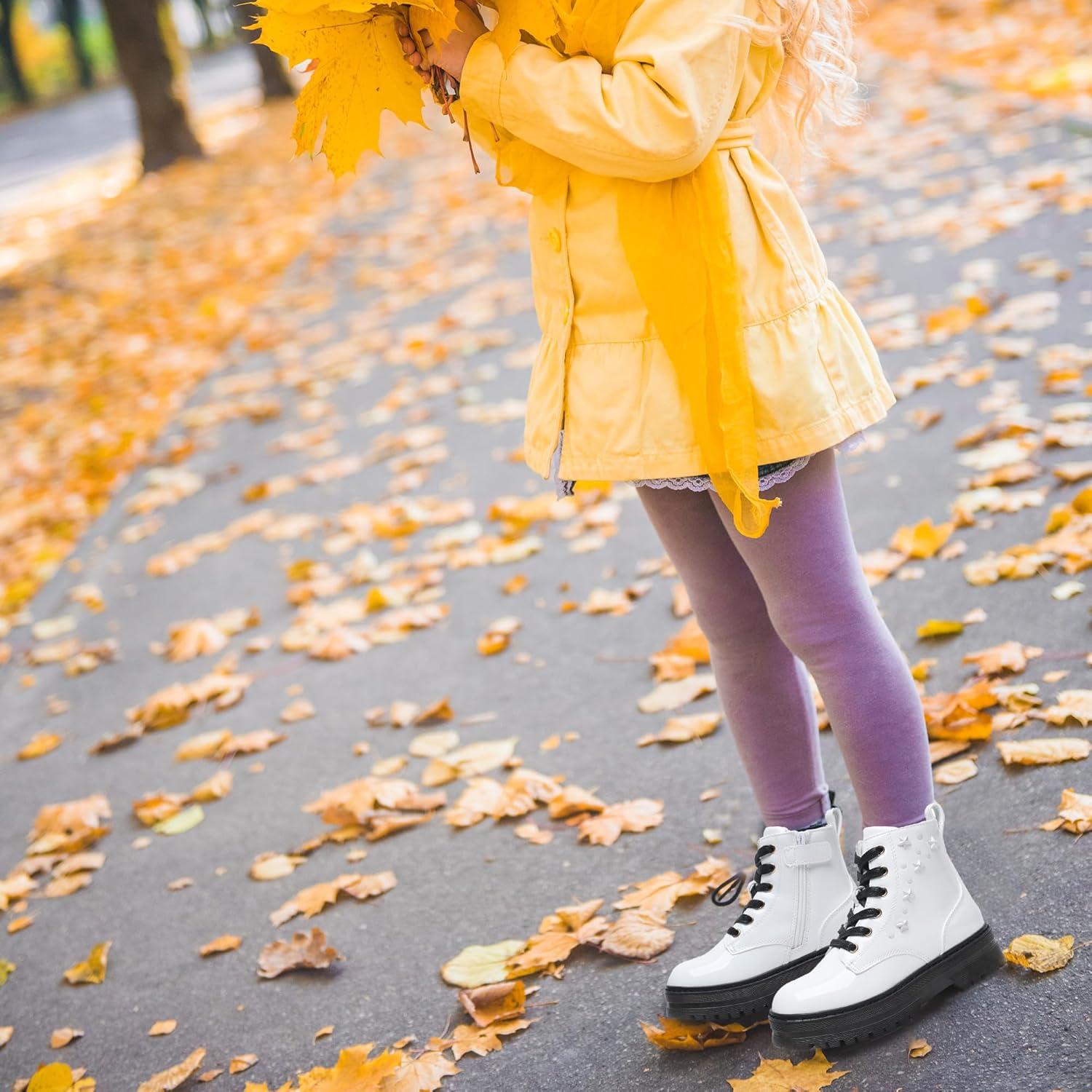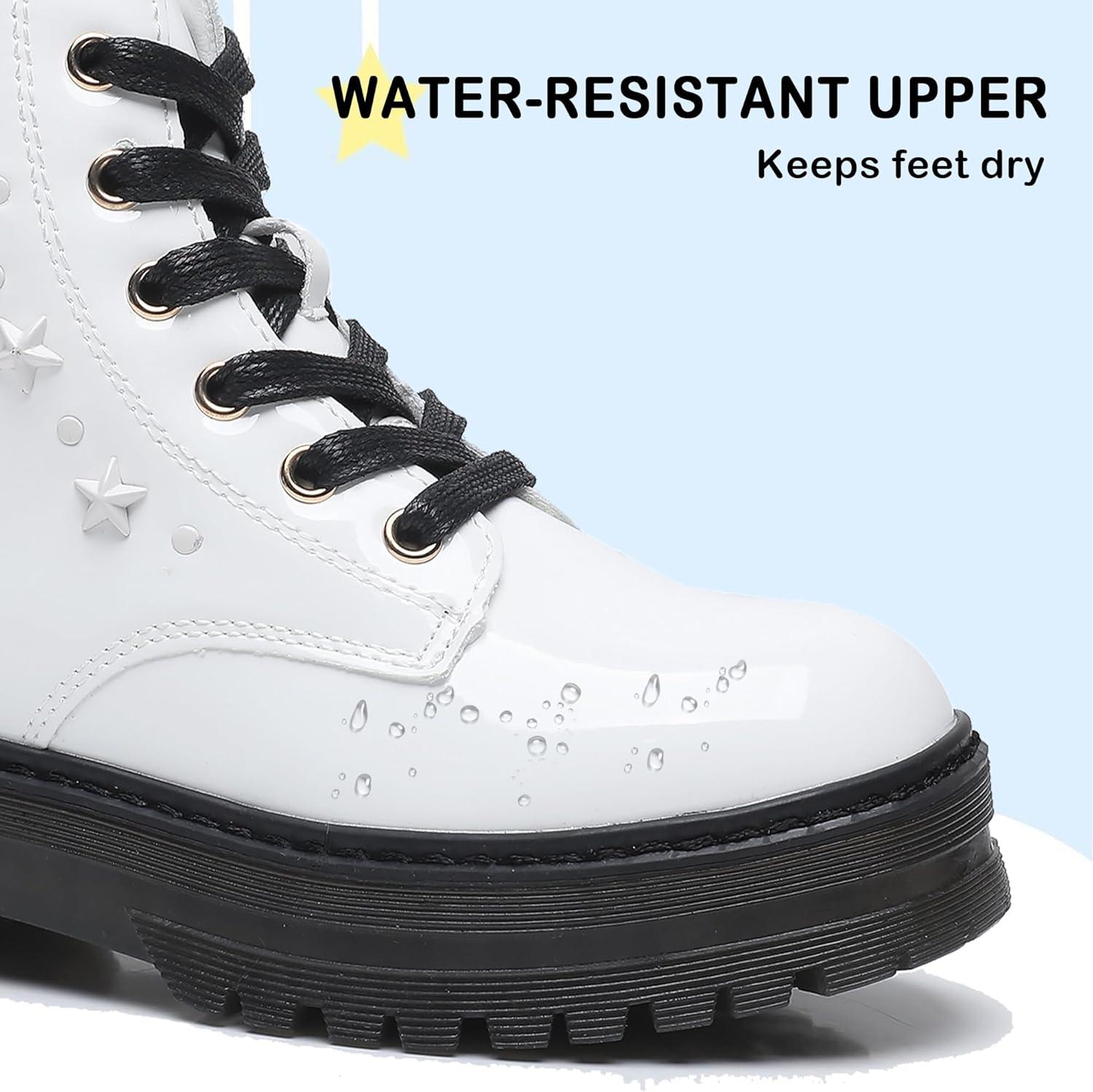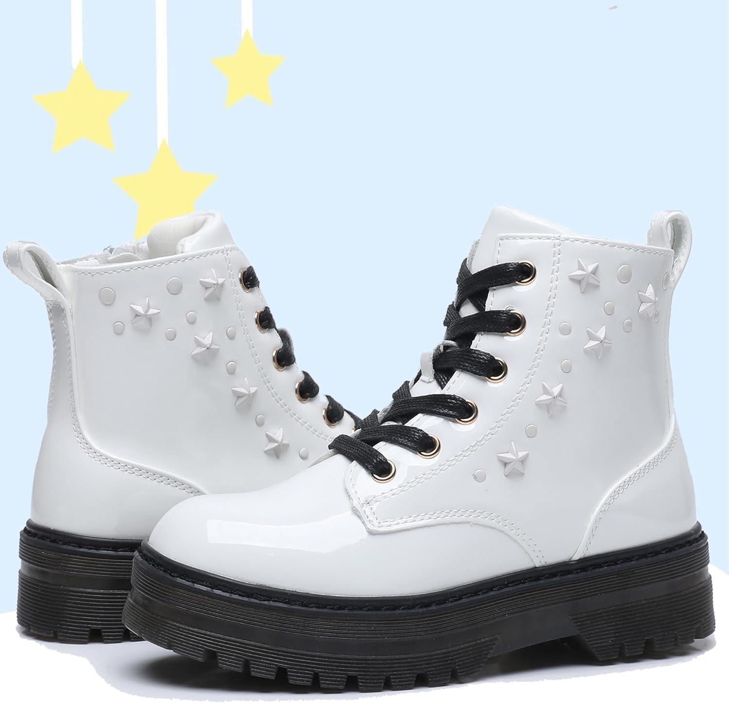 Apakowa Girls Combat Boots Girls Ankle Booties Lace Up With Side Zipper (Toddler/Little Kid/Big Kid)(Patentwhite-6250)