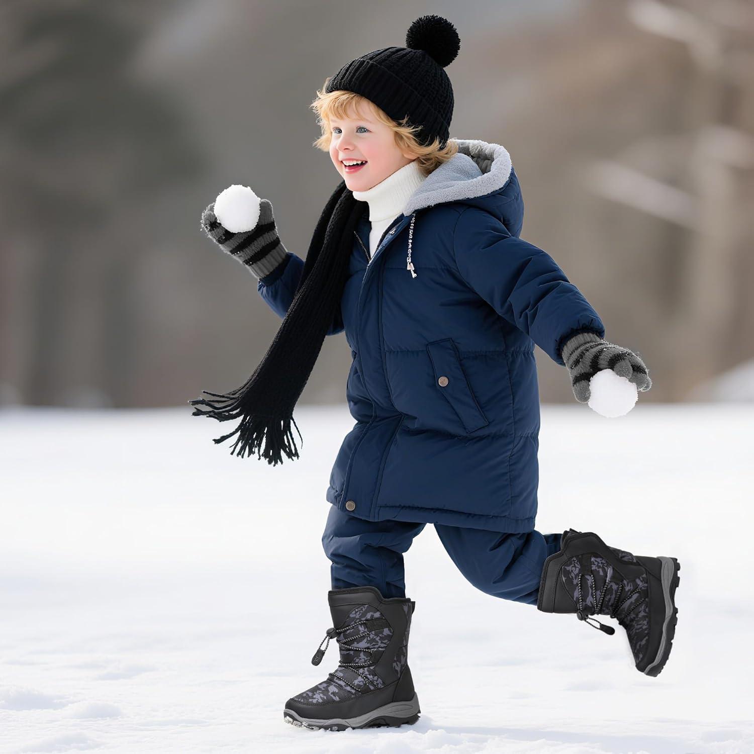Apakowa Kids Boys Girls Cold Weather Water Resistant Winter Snow Boots (Toddler/Little Kid/Big Kid)(H7321-black)