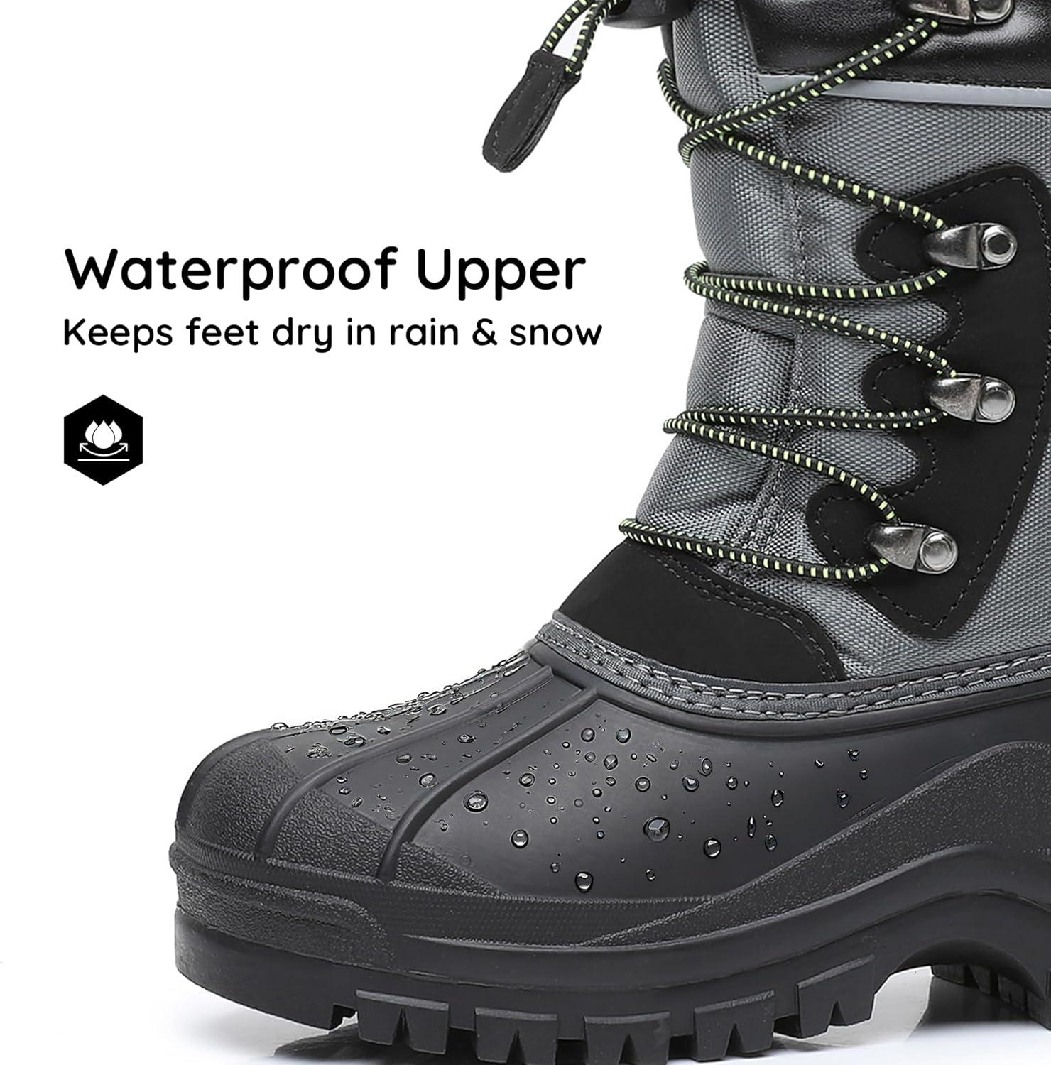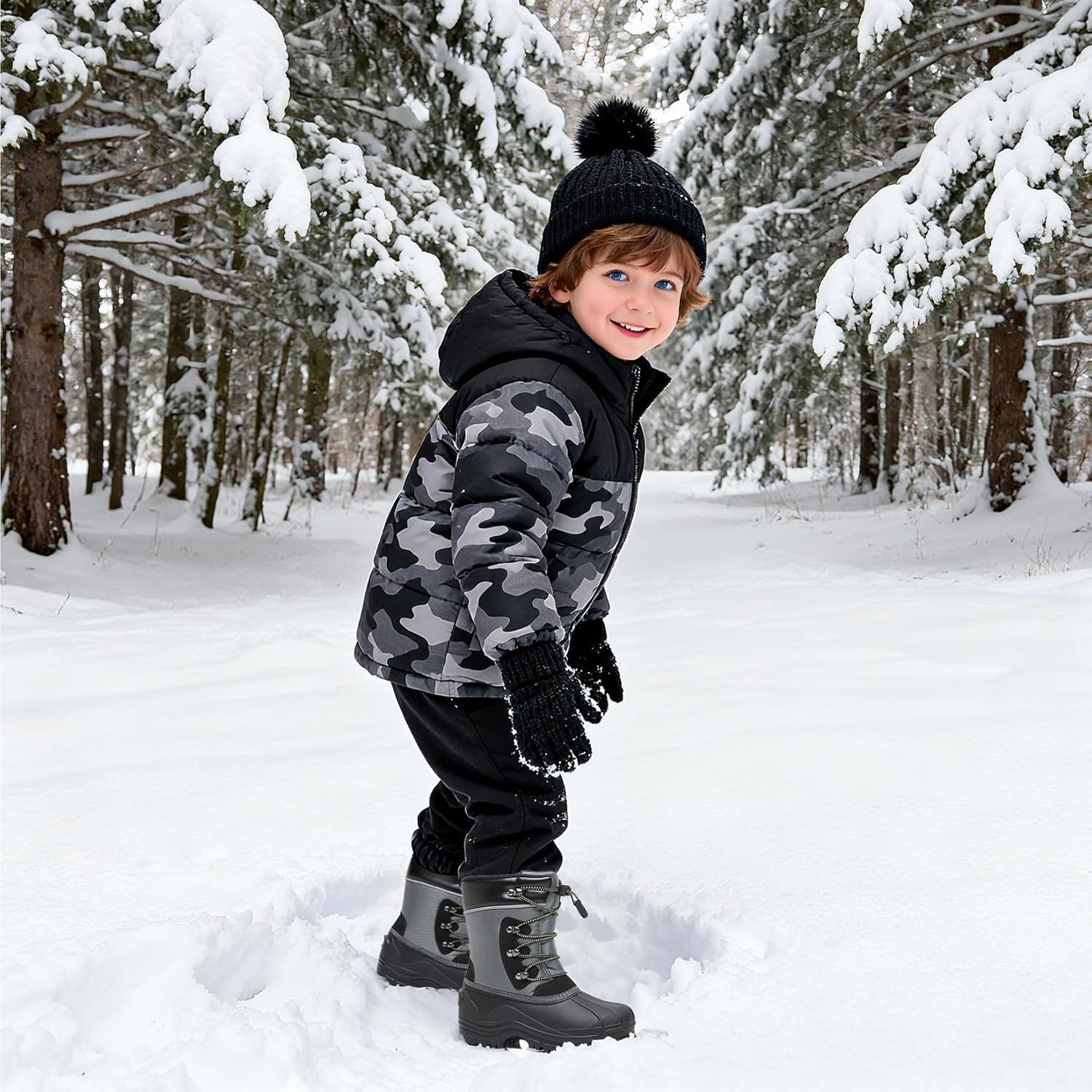 Apakowa Kids Boys Girls Winter Snow Boots Waterproof Outdoor Insulated Snow Boots (Little Kid/Big Kid)(Blackgrey-3306)