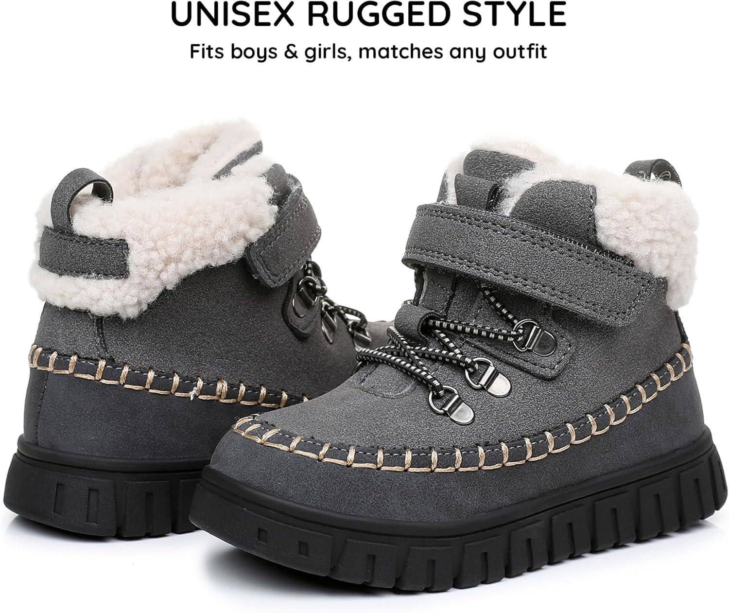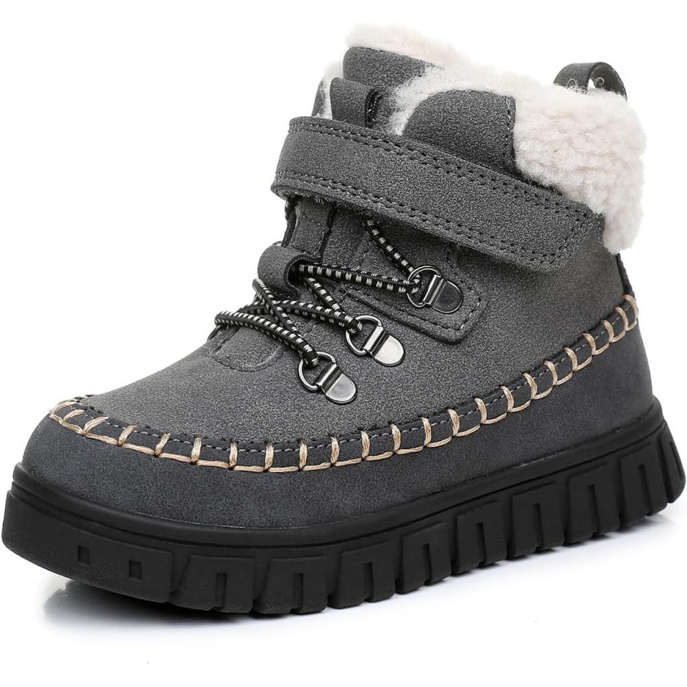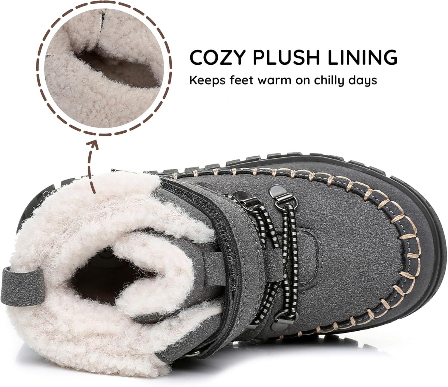 Apakowa Toddler Boys Girls Winter Snow Boots – Warm Lined Cozy Boots for Cold Weather with Hook and Loop Closure (Toddler/Little Kid)(Charcoalgray)