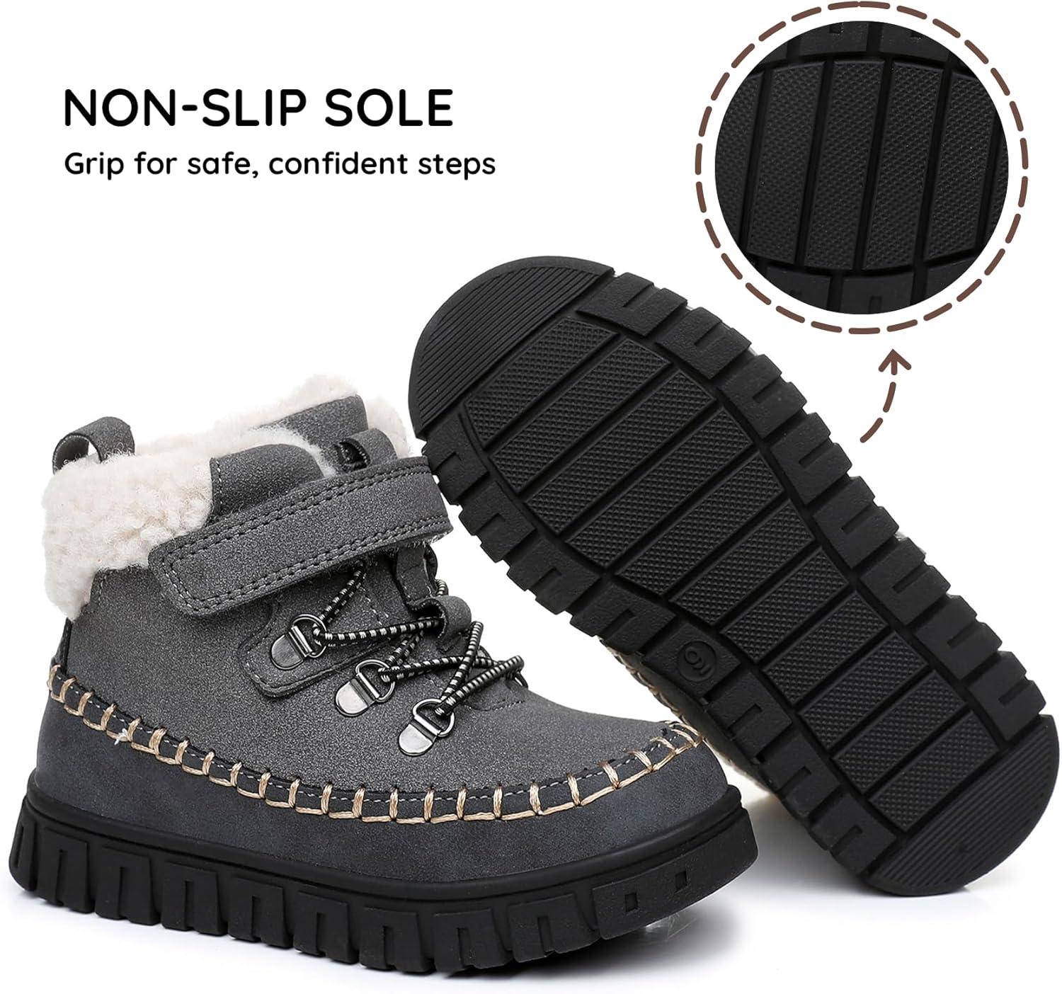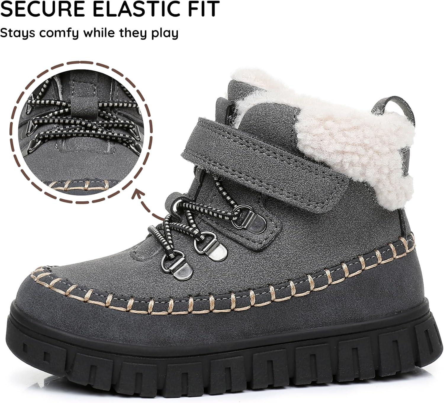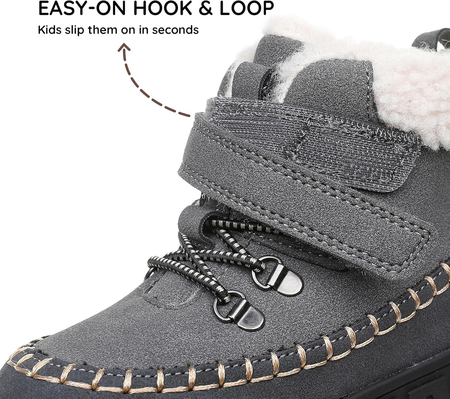 Apakowa Toddler Boys Girls Winter Snow Boots – Warm Lined Cozy Boots for Cold Weather with Hook and Loop Closure (Toddler/Little Kid)(Charcoalgray)